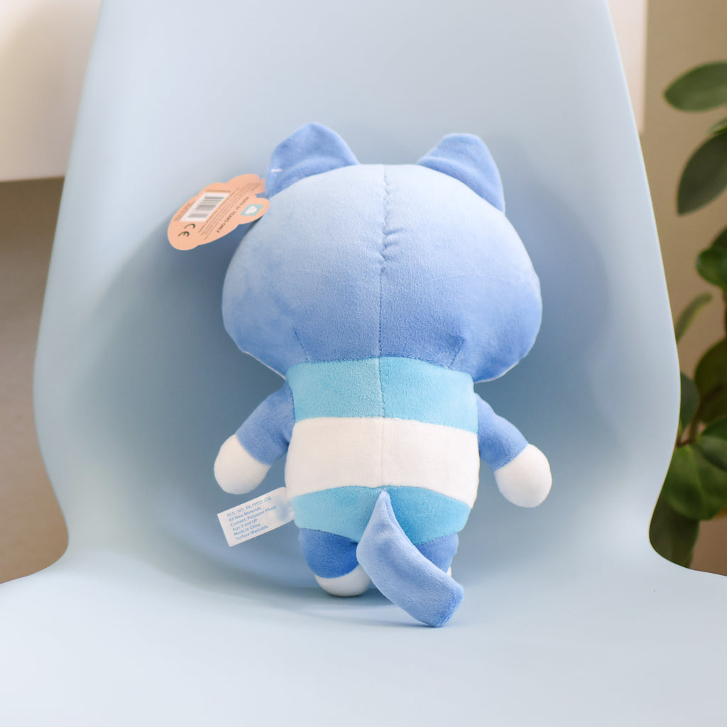 Introducing the Friendly Blue Cat Doll - the perfect companion for kids and kids at heart! Made with 100% Polyester, this soft and cuddly doll features a marshmallow-like texture that's perfect for snuggling. Measuring 12x7x5 inches, it's just the right size to carry around or display on a shelf.