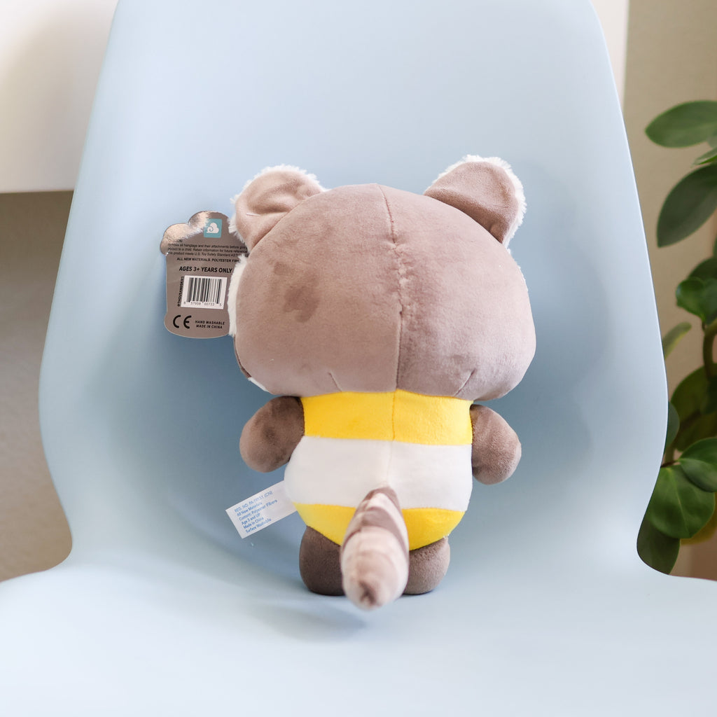 Introducing the Friendly Raccoon Doll - the perfect companion for kids and kids at heart! Made with 100% Polyester, this soft and cuddly doll features a marshmallow-like texture that's perfect for snuggling. Measuring 12x7x5 inches, it's just the right size to carry around or display on a shelf.