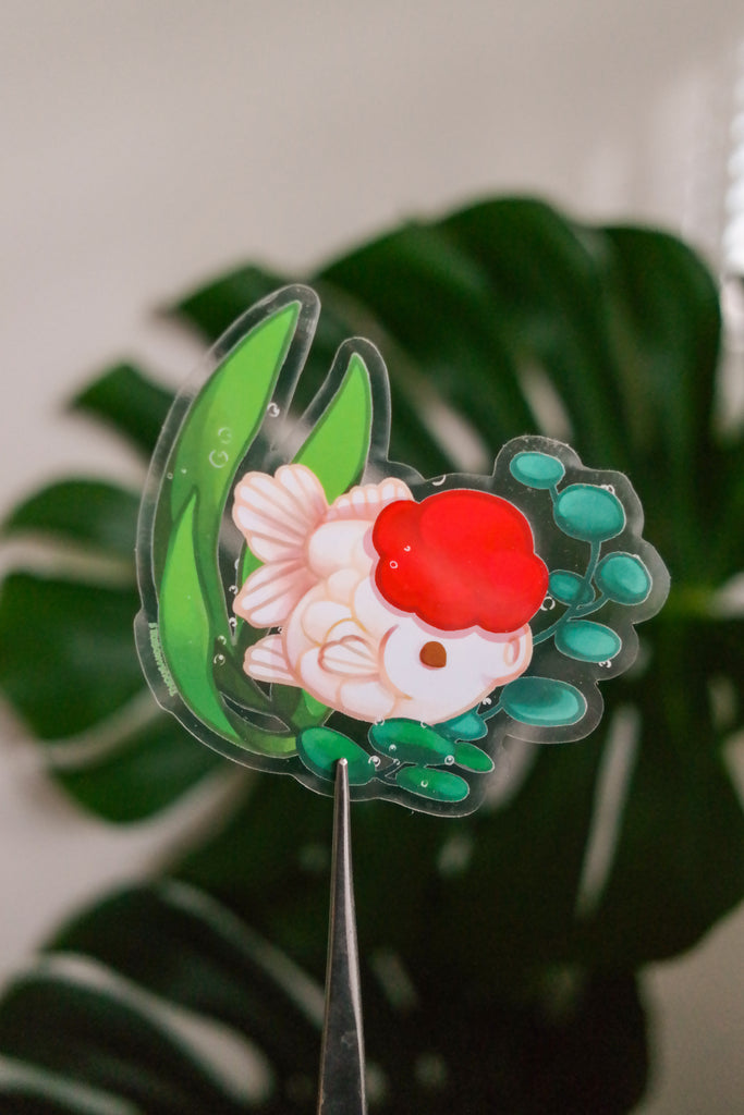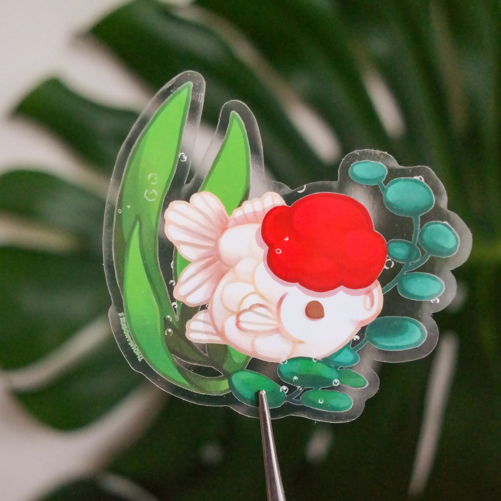 Vinyl Sticker (Transparent) Fancy Goldfish - Red Cap Oranda