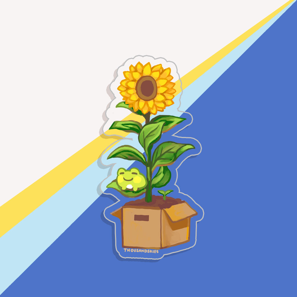 Vinyl Sticker (Transparent) Sunflower Froggie