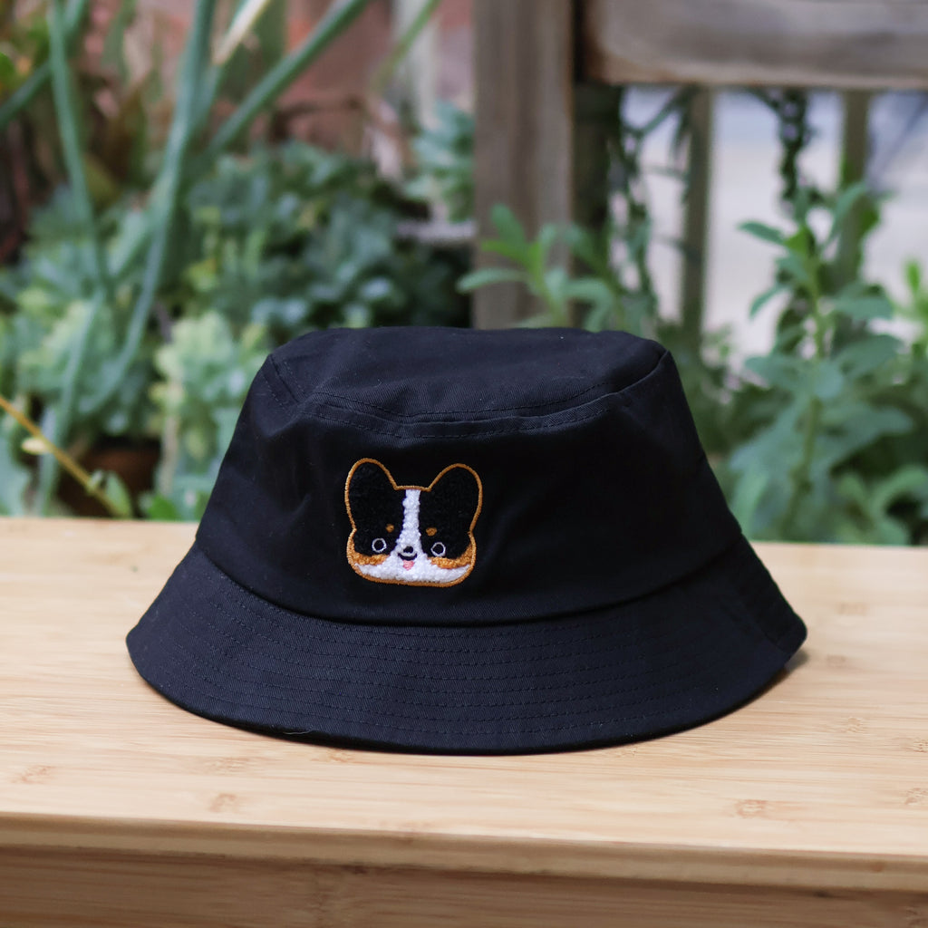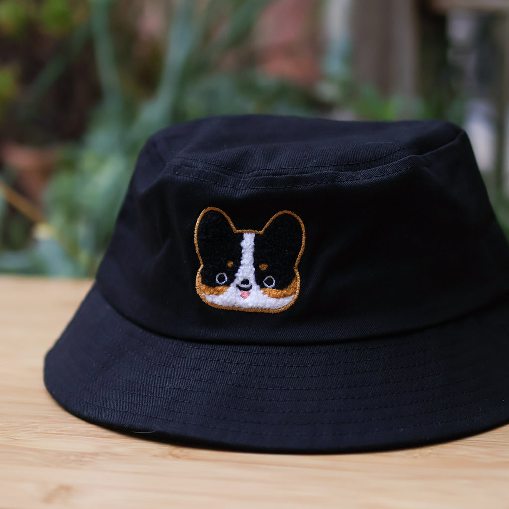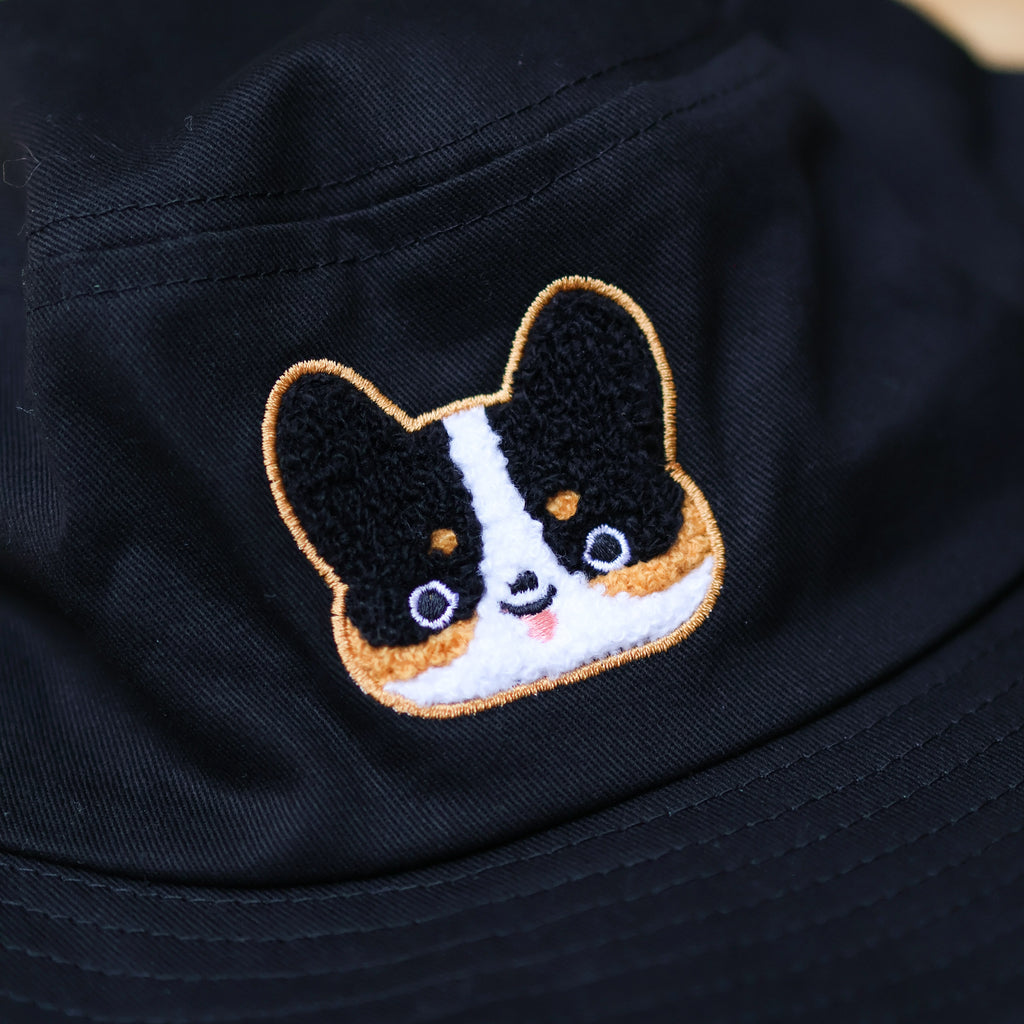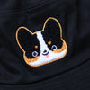 Embroidered Bucket Hat - Tricolor Corgi ( Black)