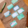 You will have eight unique designs in repeat, totaling 100 sticky notes.