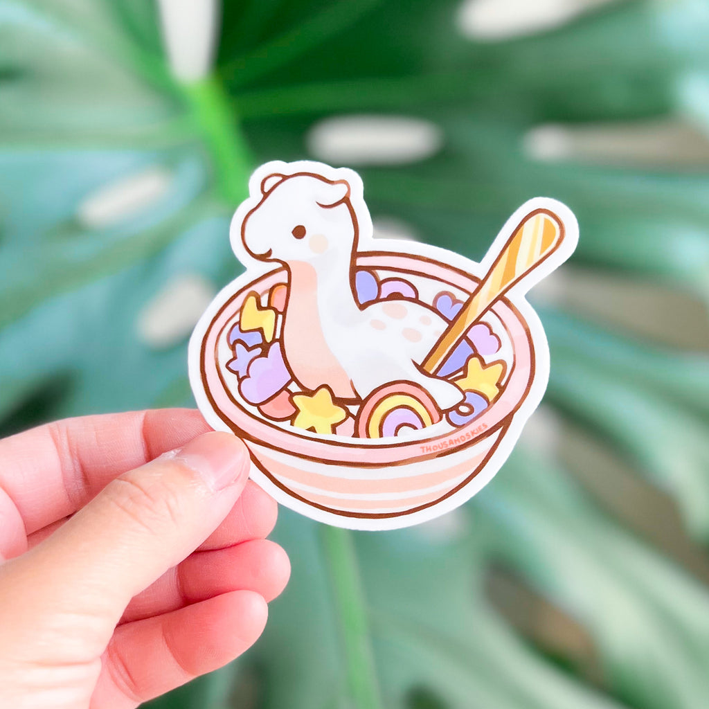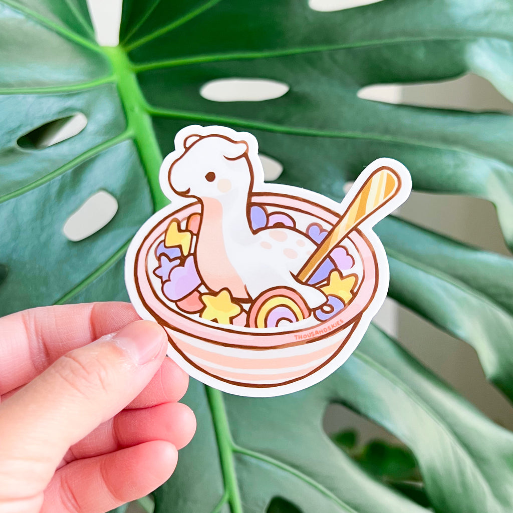 Vinyl Sticker Monster Cereal Bowl - Cream and Pink